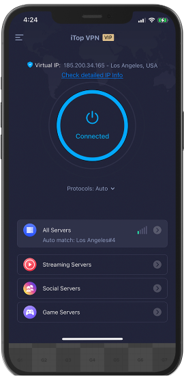 Desuden kan iTop VPN’s automatiske Kill Switch agere som vagt, når din VPN-forbindelse ryger. Du behøver ikke bekymre dig om dine informationer eller følsomme data.